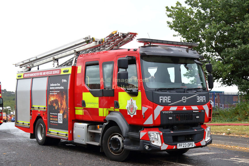 Volvo PF23OPS was seen leaving a serious fire in Royton, 27 August 2025.