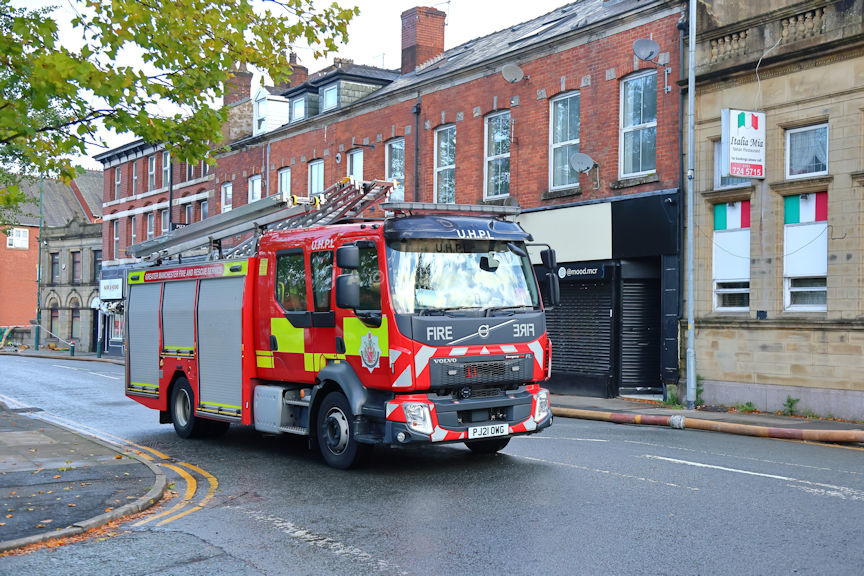 Volvo PJ21OWG was seen arriving for relief duties at a serious fire in Radcliffe.