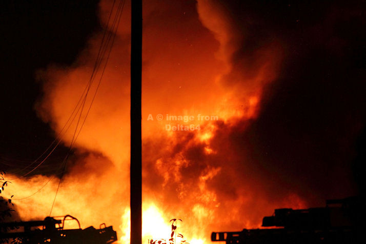 All the pictures posted on this page were taken from outside the safety cordons. The incident primarily involved a warehouse used for recycling.