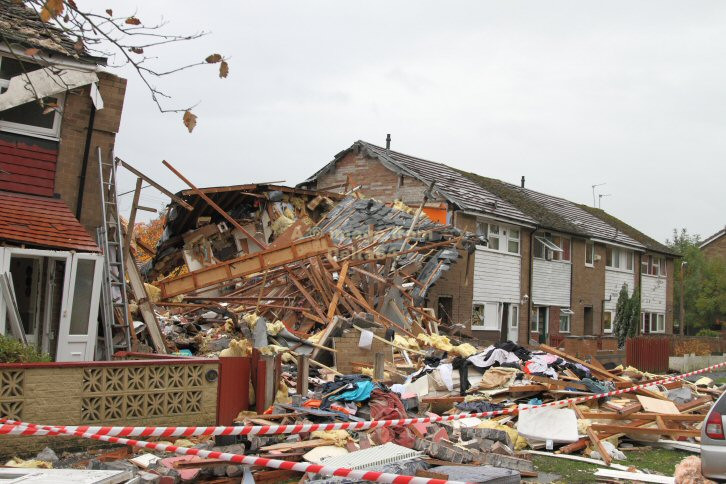 Three houses were destroyed in this incident and approximately 150 other properties sustained damage, some of which was extensive. Amazingly, there were few serious injuries, yet there can be few who looking at these pictures won't be asking the question 'how could anyone come out of that alive? Appliances attended from across Greater Manchester and from as far away as Burnley in Lancashire.