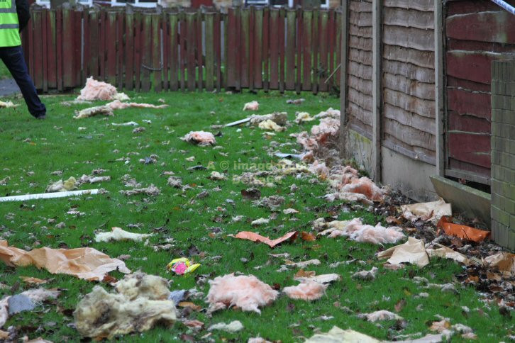 Trees, hedgerows, gardens and roadways were strewn with roof tiles and loft insulation.