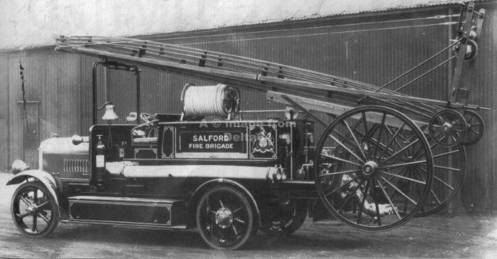 Former Salford Dennis SRJ999H was seen at the Woolworth's fire in Piccadilly, Manchester, May 1979.