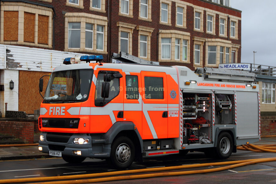 DAF LF PO56VGT was seen at an incident in Blackpool, 5 June 2014.